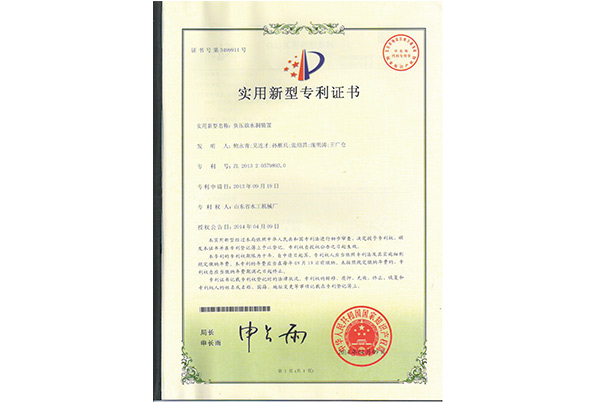 實(shí)用新型專(zhuān)利證書(shū)—負(fù)壓放水洞裝置