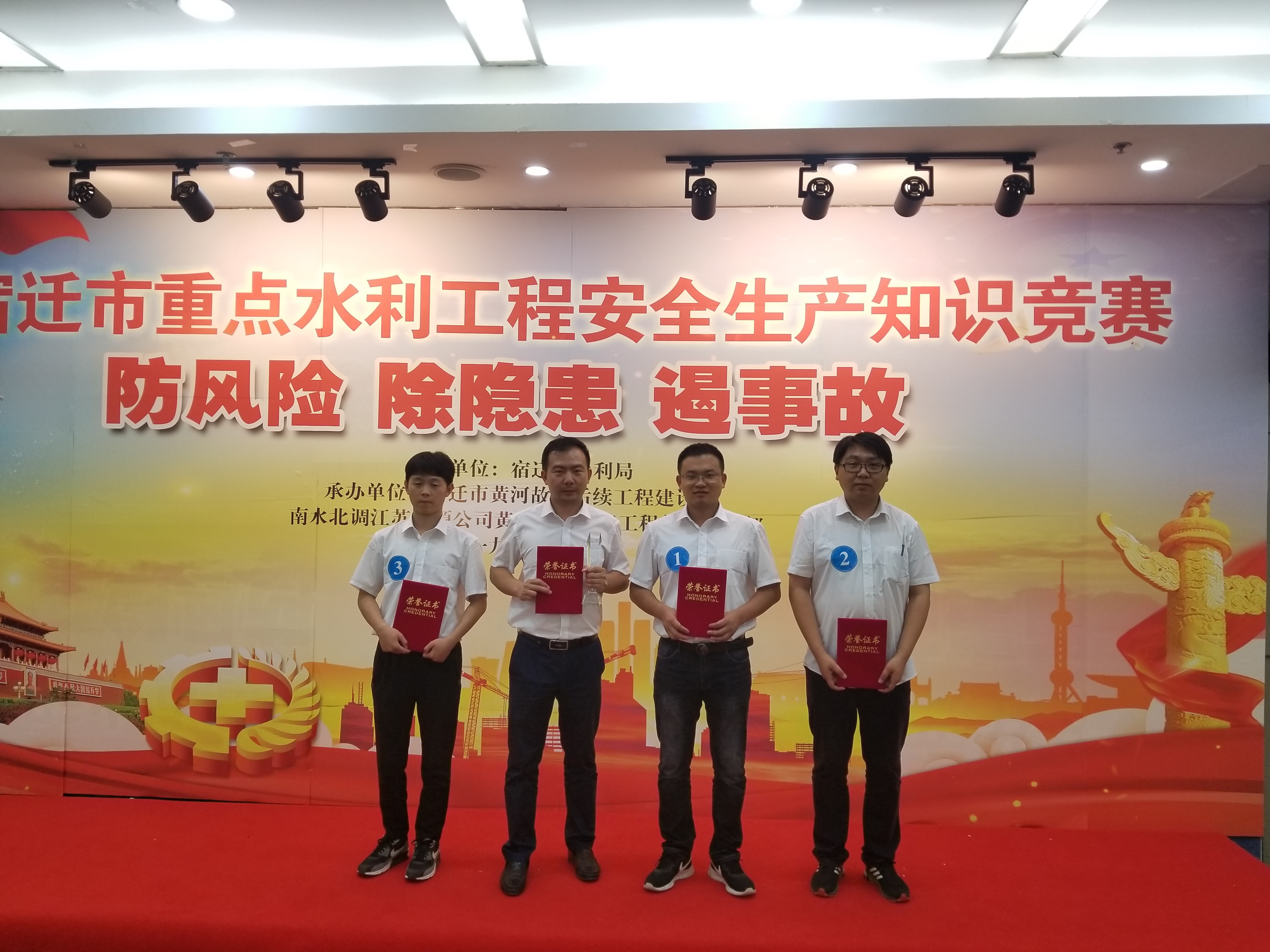 為深入推進安全生產月活動開展,普及安全生產法律知識,提高安全生產意識,筑牢安全生產防線,宿遷市水利局組織開展了“宿遷市重點水利工程安全生產知識競賽”活動。我公司宿遷市黃河故道后續(xù)工程施工3標項目經理部派出代表隊經海選、初賽、復賽多輪角逐,代表山東水總有限公司參加了總決賽,經過激烈角逐,以優(yōu)異的成績榮獲第二名,展示了山東水總有限公司職工的良好風采。