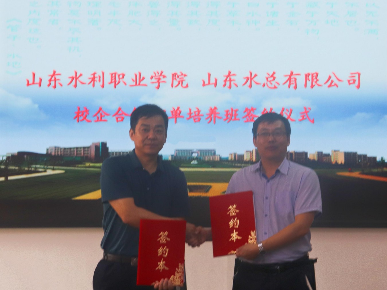 山東水總有限公司-山東水利職業(yè)學院校企合作訂單培養(yǎng)班簽約儀式暨開班典禮圓滿完成