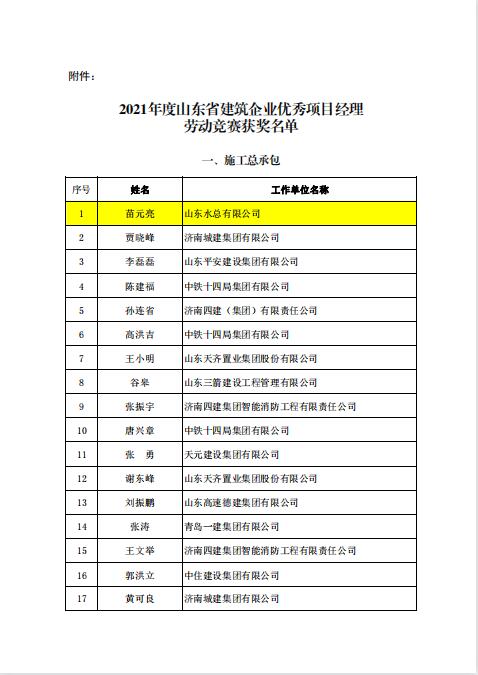 公司三名同志榮獲 2021年度“山東省建筑企業(yè)優(yōu)秀項(xiàng)目經(jīng)理”稱號(hào)