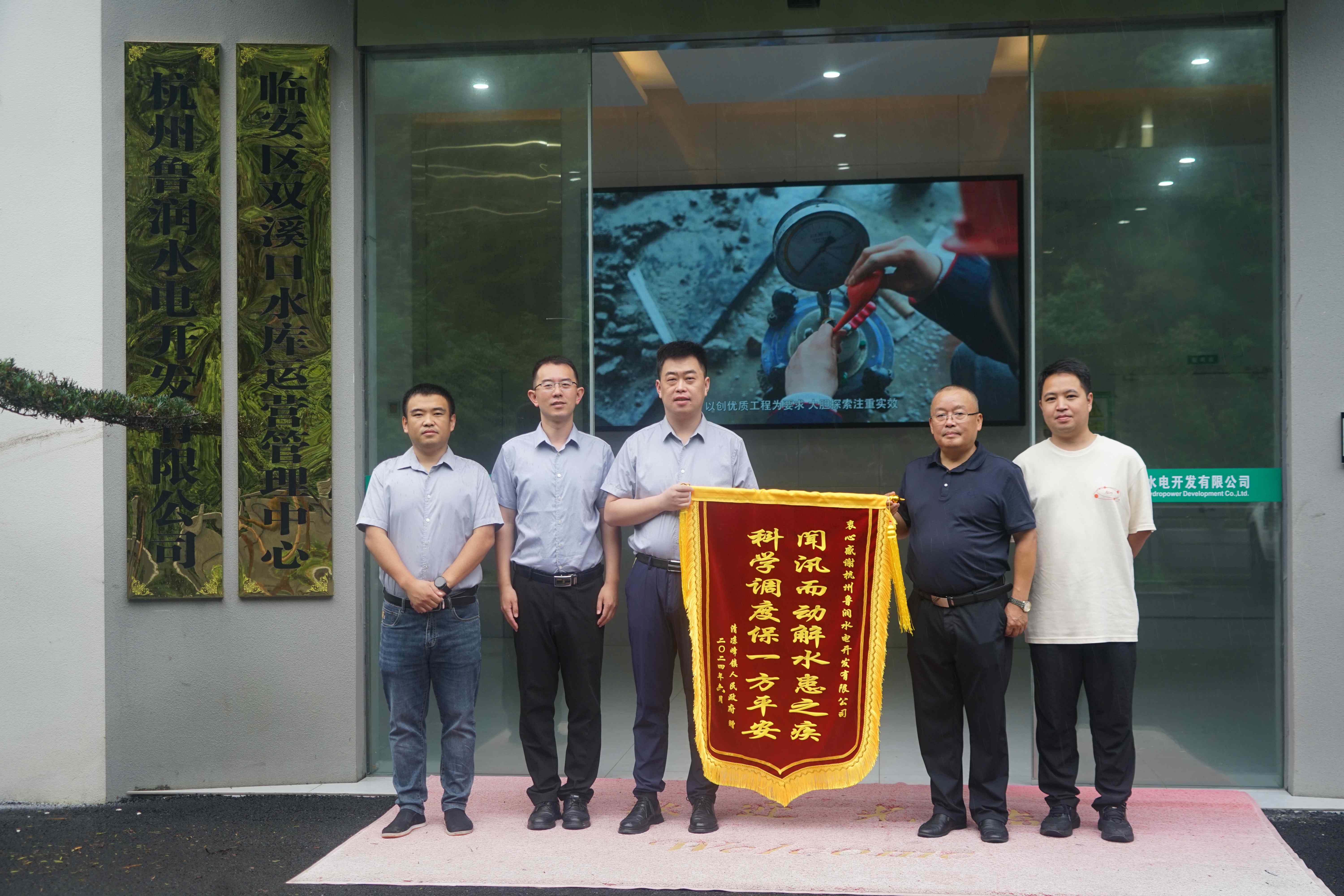 7月4日,浙江省正式出梅,臨安區(qū)清涼峰鎮(zhèn)黨委委員方春輝代表鎮(zhèn)政府送來了一面沉甸甸的錦旗——“聞?dòng)嵍鴦?dòng)解水患之急、科學(xué)調(diào)度保一方平安”,表達(dá)了對(duì)雙溪口水庫防洪利器作用的認(rèn)可和杭州魯潤公司科學(xué)嚴(yán)謹(jǐn)高效工作的肯定。