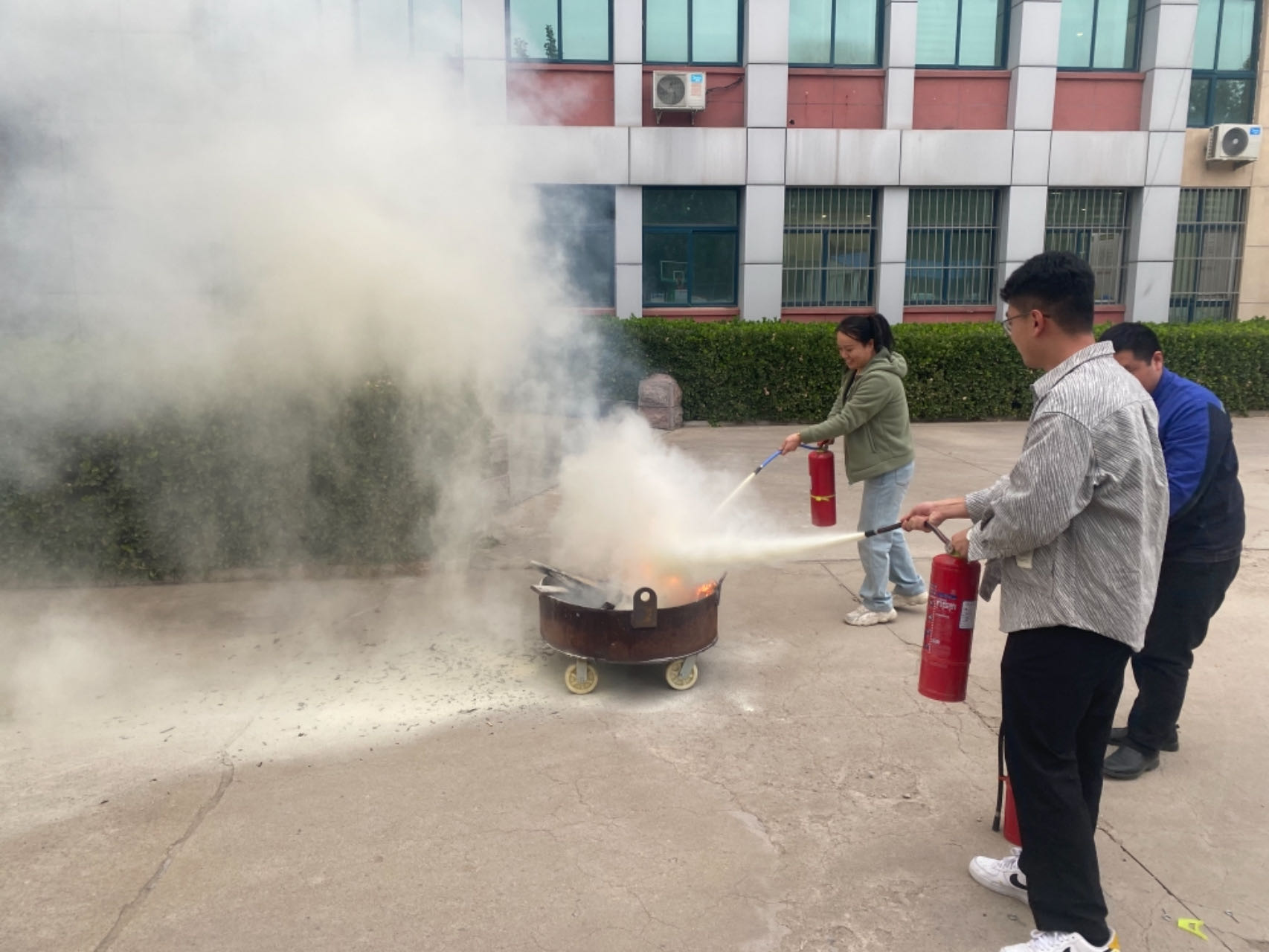在演練開始之前,首先對活動參與人員進行了消防安全培訓(xùn),內(nèi)容包括了火災(zāi)逃生知識、各類滅火器材使用方法以及火災(zāi)事故案例分析等。隨后,進行了現(xiàn)場模擬火災(zāi)疏散及救火演練。隨著警報響起,各職工迅速有序地按照預(yù)定路線撤離到安全地帶,并使用滅火器撲滅明火,遏制了火情的蔓延。