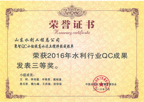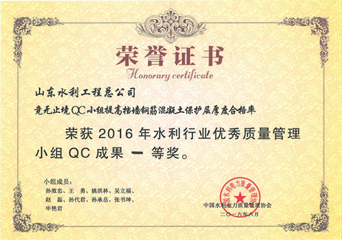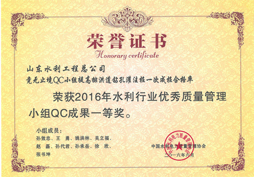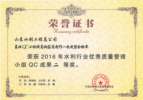 公司“提高排洪道鉆孔灌注樁一次成樁合格率”等四項(xiàng)成果榮獲2016年水利行業(yè)優(yōu)秀質(zhì)量管理小組QC成果獎(jiǎng)
