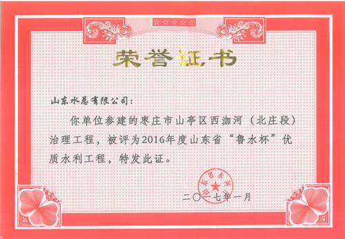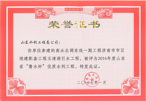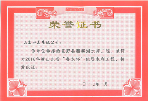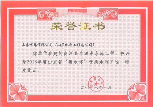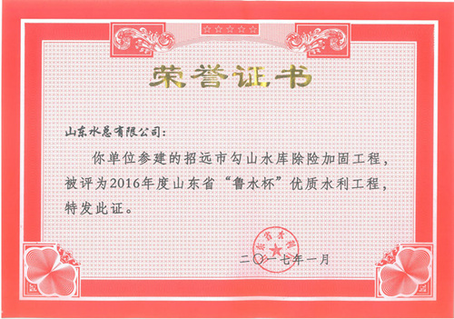 公司“招遠(yuǎn)市勾山水庫(kù)除險(xiǎn)加固工程”等八項(xiàng)工程被評(píng)為2016年度山東省“魯水杯”優(yōu)質(zhì)水利工程