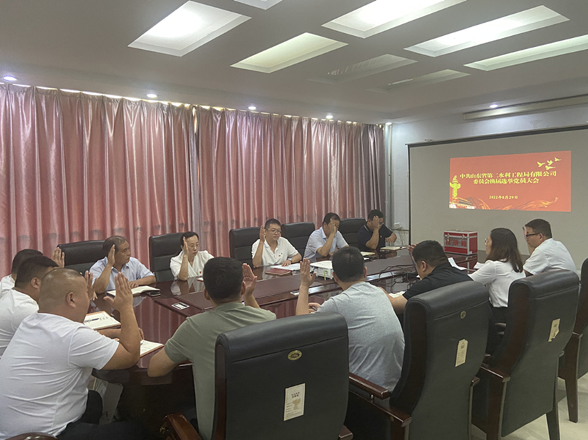 經(jīng)山東水總黨委批準(zhǔn),8月29日下午,二局有限公司黨委召開(kāi)全體黨員大會(huì),進(jìn)行黨委換屆選舉工作。會(huì)議由黨委書(shū)記、執(zhí)行董事、總經(jīng)理王傳波主持,公司全體黨員參加。
