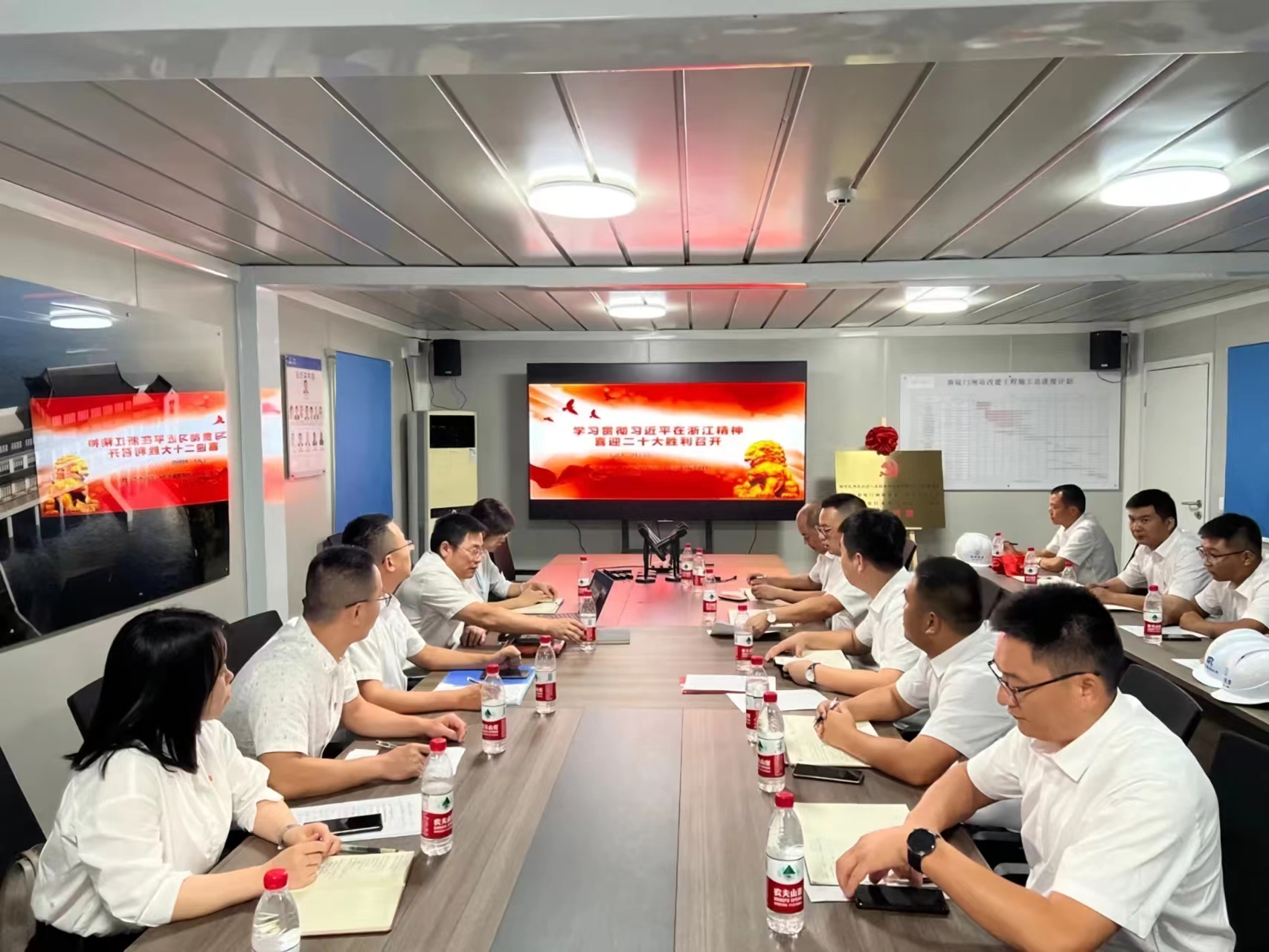 余杭、臨安兩區(qū)自然資源豐富、水利文化深厚。新陡門(mén)閘站改建工程和雙溪口水庫(kù)工程兩個(gè)項(xiàng)目均為重點(diǎn)水利項(xiàng)目,黨建聯(lián)建在浙江省開(kāi)創(chuàng)了水利主管部門(mén)和項(xiàng)目臨時(shí)支部黨建共建的先河,也是水利項(xiàng)目臨時(shí)黨支部之間共建的首次嘗試,是落實(shí)黨建進(jìn)工地、“黨旗在基層一線(xiàn)高高飄揚(yáng)”的進(jìn)一步探索,必將為后續(xù)其他項(xiàng)目的建設(shè)提供示范效應(yīng)。下一步,共建各方將加強(qiáng)溝通交流,形成互幫互助、比學(xué)趕超的良好氛圍,爭(zhēng)取兩個(gè)項(xiàng)目早日建成運(yùn)行,為兩區(qū)人民共同富裕貢獻(xiàn)水利人的一份力量,以?xún)?yōu)異的成績(jī)迎接黨的二十大勝利召開(kāi)。