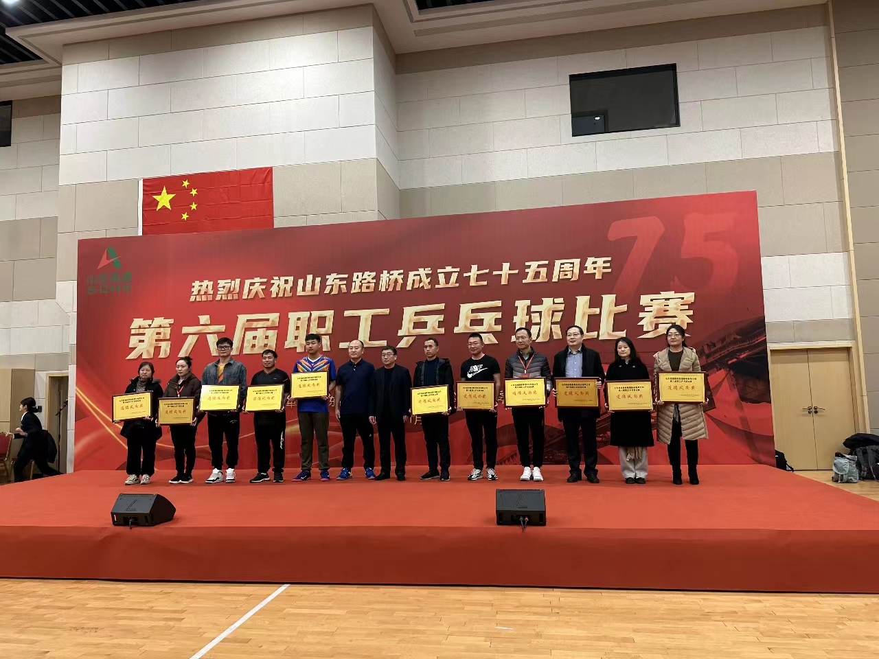 為展現(xiàn)職工良好的精神風(fēng)貌,11月16日,山東水總組建一支由公司黨委委員、副總經(jīng)理杜貞義等7人組成的乒乓球隊(duì),參加路橋股份工會(huì)舉辦的第六屆職工乒乓球比賽。