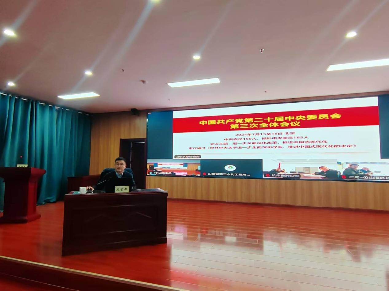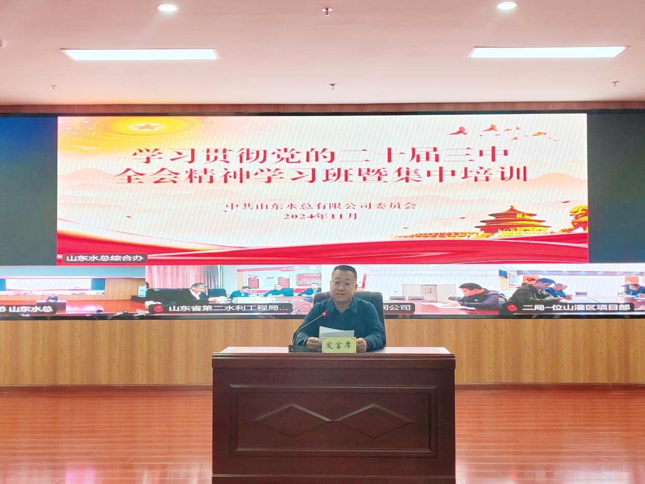 為深入學習貫徹落實黨的二十屆三中全會精神,按照山東高速集團黨委統(tǒng)一部署,11月18日,山東水總公司黨委組織舉辦了黨的二十屆三中全會精神學習班暨集中培訓,教育引導廣大黨員干部深入領會黨的二十屆三中全會的重大意義和豐富內(nèi)涵,切實把學習成效轉(zhuǎn)化為工作實效,推動習近平總書記重要指示要求、全會各項部署及上級黨委工作安排在公司落實落地。本次專題學習班為期三天,采取輔導報告講座、分組集中學習、交流研討等相結(jié)合方式。