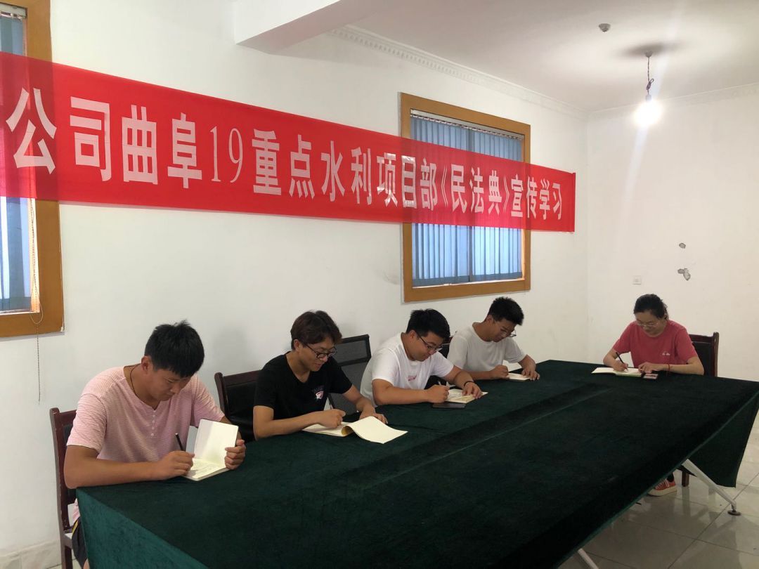 為響應(yīng)總公司法務(wù)與清收辦公室組織的“《民法典》宣傳月”活動(dòng), 7月23日晚上,泗水縣黃陰集大閘除險(xiǎn)加固工程項(xiàng)目經(jīng)理部在工地會(huì)議室召開《民法典》學(xué)習(xí)宣貫會(huì)議、2020年7月25日,赫章縣新寨水庫(kù)工程項(xiàng)目部全體成員在會(huì)議室進(jìn)行《民法典》宣傳學(xué)習(xí)、曲阜2019年重點(diǎn)水利建設(shè)項(xiàng)目施工 一標(biāo)段在2020年7月28日進(jìn)行《民法典》學(xué)習(xí)、平塘縣擦耳巖水庫(kù)工程項(xiàng)目2020年7月29日進(jìn)行《民法典》學(xué)習(xí)、宣貫情況匯報(bào)如下: