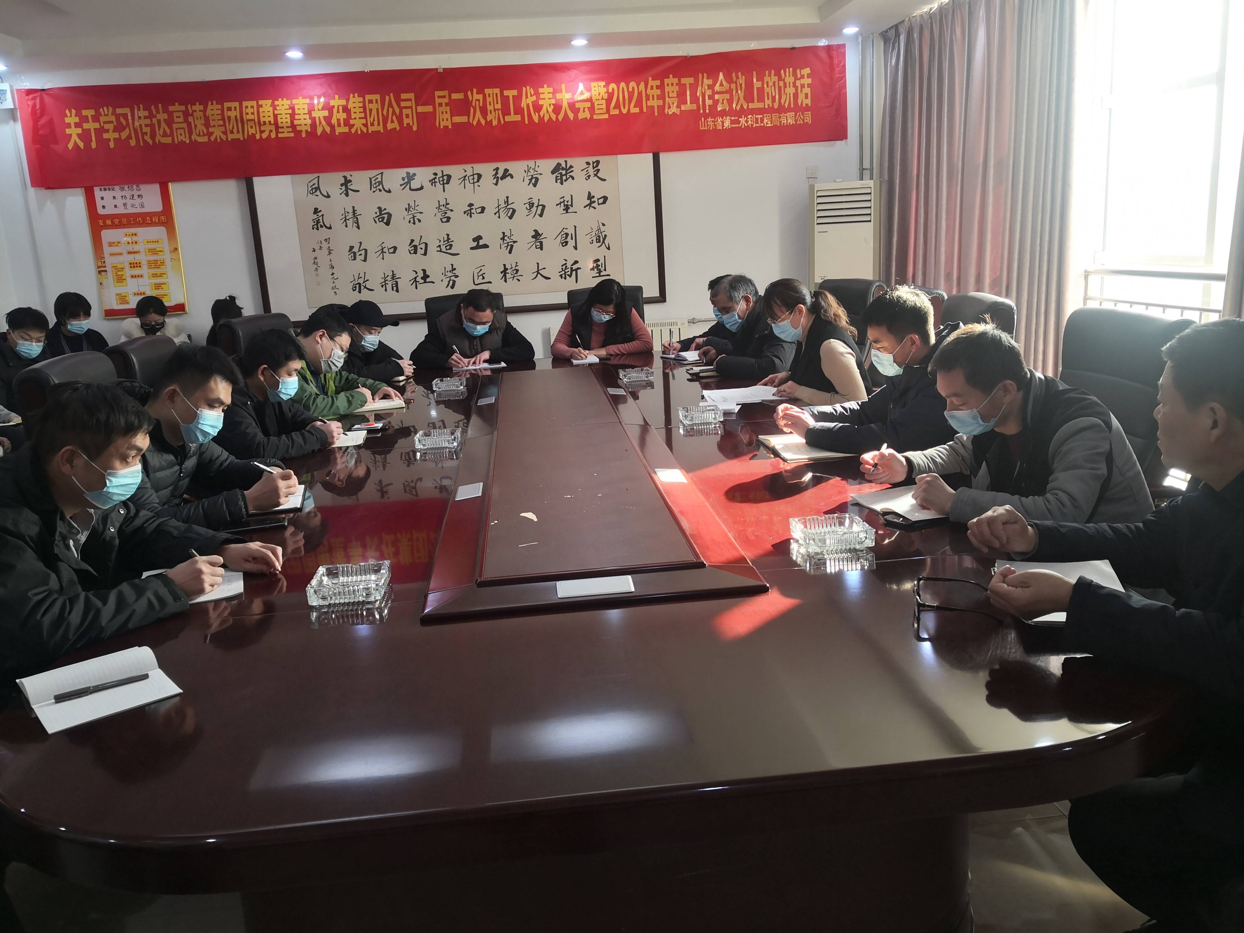 2021年2月8日,山東省第二水利工程局有限公司召集機關各科室、各項目人員組織開展學習貫徹集團黨委書記、董事長周勇在集團公司一屆二次職工(會員)代表大會暨2021年度工作會議上的重要講話。