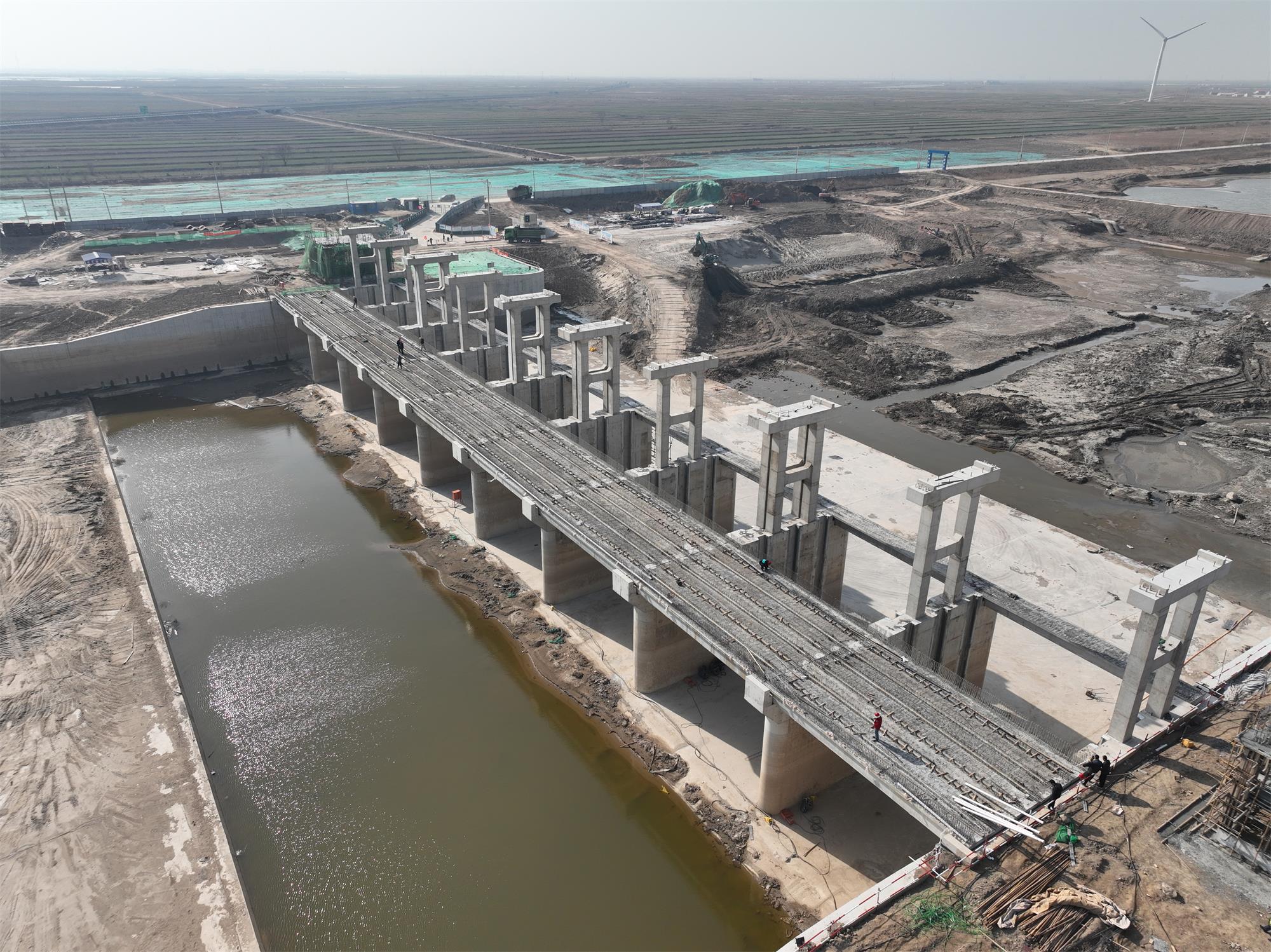 該項(xiàng)目自2023年開(kāi)工以來(lái),項(xiàng)目部秉著“起跑即沖刺、開(kāi)局即決戰(zhàn)”的理念,克服臨海大風(fēng)惡劣天氣、高空作業(yè)及工序穿插作業(yè)等困難,通過(guò)項(xiàng)目部人員集思廣益,優(yōu)化施工方案,嚴(yán)格把控施工質(zhì)量,牢記安全紅線,一個(gè)月內(nèi)完成閘門(mén)安裝、交通橋板、檢修橋板及機(jī)架橋板吊裝等工作。
