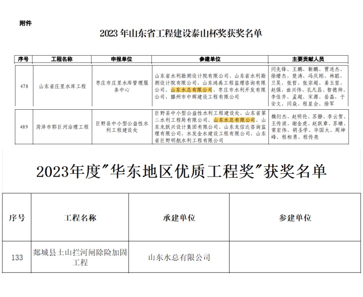 由公司承建的菏澤市鄆巨河治理工程(巨野縣段)與莊里水庫工程均被授予了“泰山杯”獎(jiǎng)。該獎(jiǎng)項(xiàng)是山東省對工程建設(shè)中技術(shù)革新、質(zhì)量管理及整體執(zhí)行力等綜合素質(zhì)最高層次的肯定。鄆巨河治理工程和莊里水庫兩個(gè)項(xiàng)目對于提升當(dāng)?shù)胤篮槟芰?、改善生態(tài)環(huán)境以及保障區(qū)域供水安全起到了關(guān)鍵作用,并將為當(dāng)?shù)亟?jīng)濟(jì)社會(huì)發(fā)展做出長遠(yuǎn)貢獻(xiàn)。