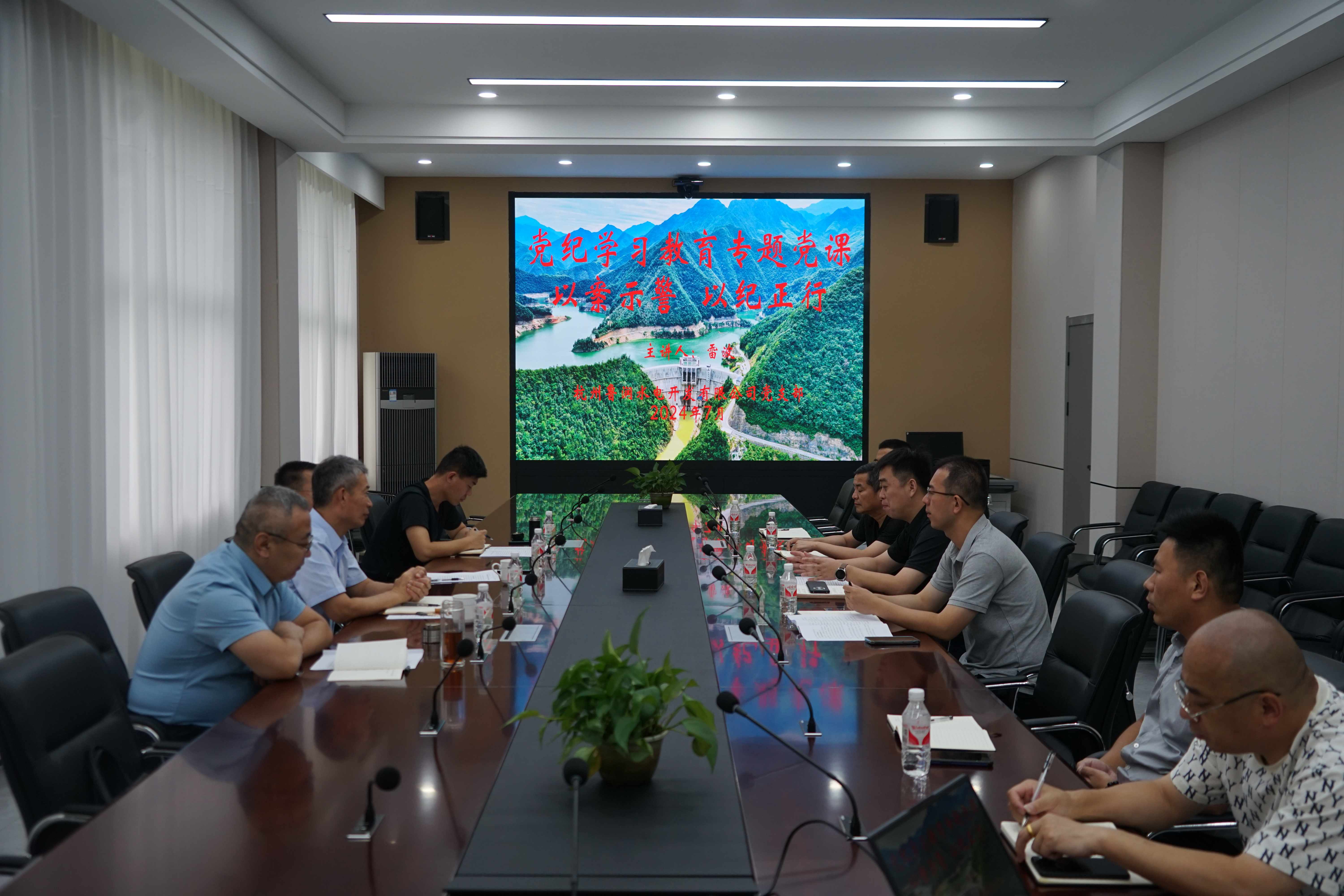 活動中,公司領(lǐng)導代表水總工會為雙溪口水庫一線職工送來防暑降溫慰問品,將水總的關(guān)心和清涼沁入職工心里。隨后開展了調(diào)研活動,深入了解杭州魯潤公司的黨建群團工作、生產(chǎn)經(jīng)營狀況。王坤林指出,一要充分發(fā)揮杭州魯潤公司在浙江地區(qū)橋頭堡作用,深耕市場,擴大業(yè)務(wù)板塊;二要切實發(fā)揮黨建引領(lǐng)作用,做到黨建與業(yè)務(wù)互融互促雙提高;三要繼續(xù)強化宣傳工作,聚焦雙溪口水庫建設(shè)經(jīng)驗、水利運營版塊擴展等方面,擦亮“水總品牌”。隨后,雷波以“以案示警 以紀正行”為題給黨員干部講授紀律黨課。