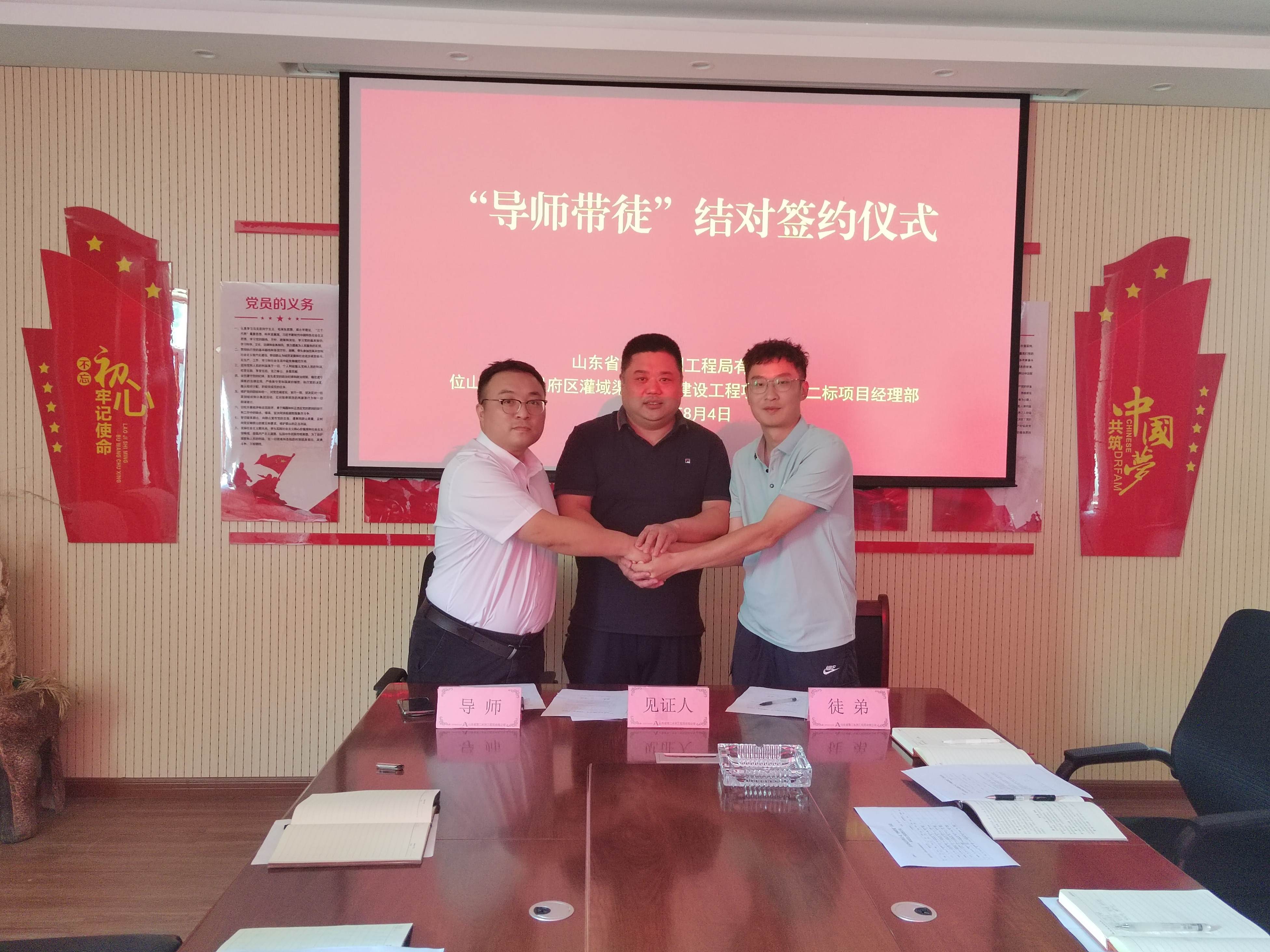 “師徒結(jié)對(duì) 薪火相繼”- 二局有限公司位山灌區(qū)項(xiàng)目部舉行“導(dǎo)師帶徒”結(jié)對(duì)簽約儀式