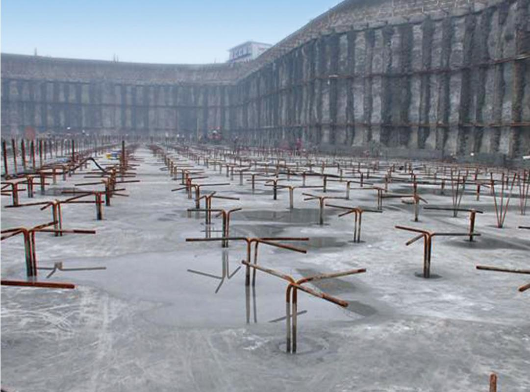 濟(jì)南市聚隆廣場(chǎng)基坑支護(hù):抗浮錨桿,樁徑150mm,樁長12m,成樁7300余顆。