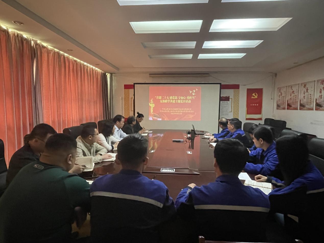 為進(jìn)一步促進(jìn)黨建工作互動、對標(biāo)提升黨支部黨建工作水平,10月16日,水工機(jī)械公司黨支部與黨建工作對標(biāo)二局有限公司黨支部聯(lián)合開展“喜迎二十大 感黨恩 守初心 勇?lián)?dāng)”支部聯(lián)學(xué)共建主題黨日活動。