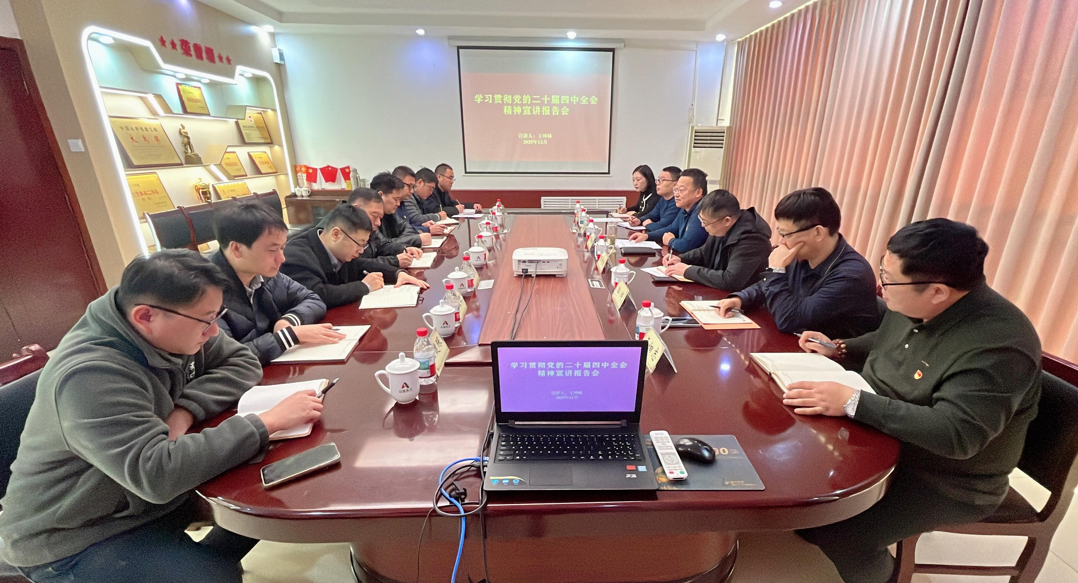 為深入學(xué)習(xí)宣傳貫徹黨的二十屆四中全會(huì)精神,引導(dǎo)全體干部職工把思想和行動(dòng)統(tǒng)一到全會(huì)決策部署上來,12月11日,公司黨委副書記、職工董事、工會(huì)主席王坤林同志到水工機(jī)械公司,專題宣講黨的二十屆四中全會(huì)精神。水工機(jī)械公司黨支部書記、董事長、總經(jīng)理王傳波同志主持宣講會(huì)。